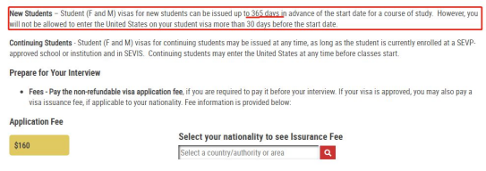 请注意:365天及30天的规定不适用于继续就读的学生。续读生可以在任何时期申请新的签证,只要他们一直维持在美国的身份并且被登录在SEVIS系统里的记录是有效的即可。