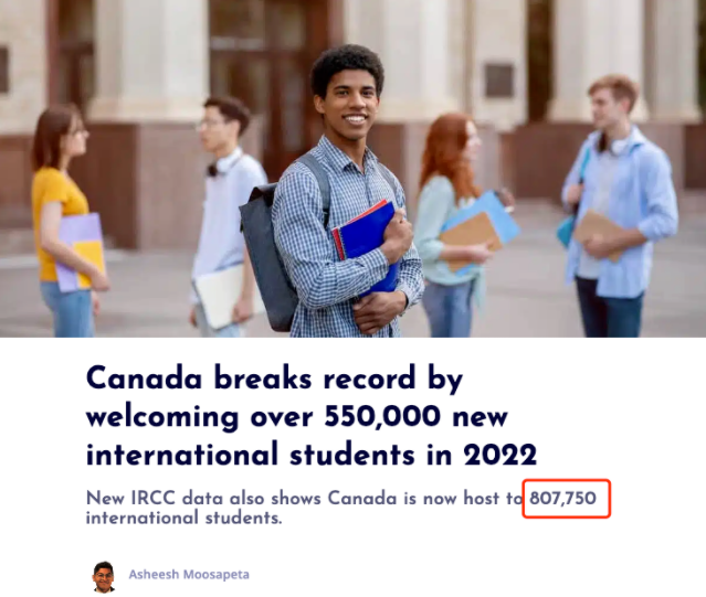 而截至2022年12月31日,加拿大境内共计807,750名国际学生,较2019年新增近17万人,中国留学生就有超过10万名!