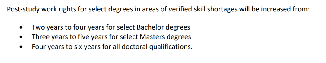 这一重大利好,将意味着澳洲的留学生毕业后有更多机会与时间留澳就业,获得工作经验,尤其对于想实现移民的留学生来说,此举可以增加移民的可能性!