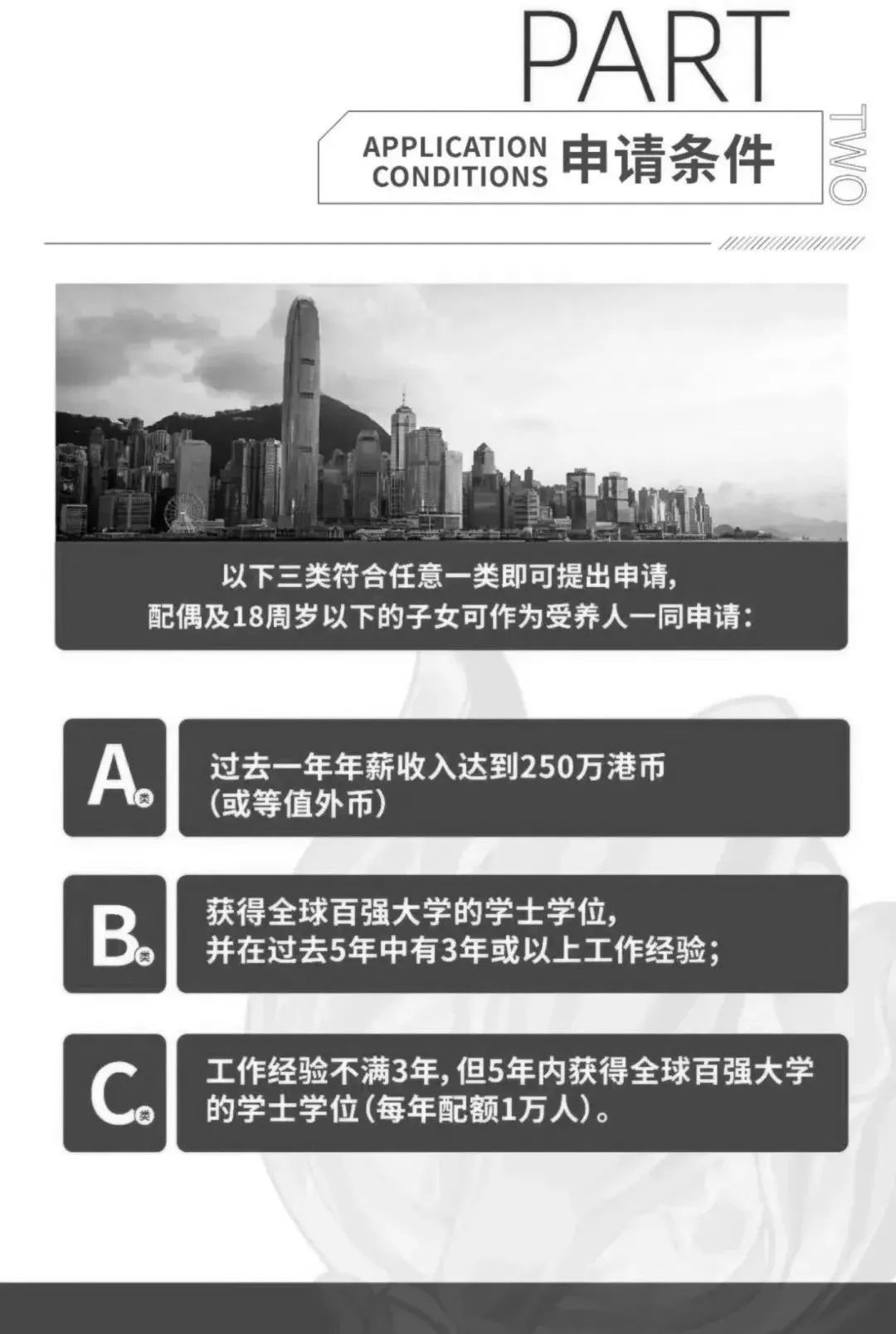 其中,针对高学历人才的要求——“本科毕业于全球百强大学,并在过去5年内累计至少3年工作经验”及“申请前5年内,从全球百强大学本科毕业,但工作经验少于3年”的人士,前者没有名额限制,后者每年10000人!